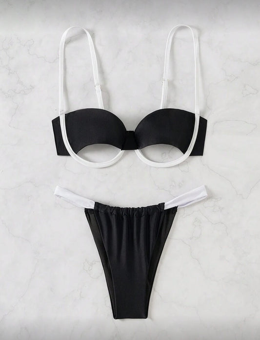 Fato de banho branco e preto