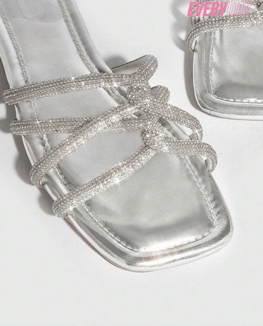 EsgotadoChinelos prateados com strass